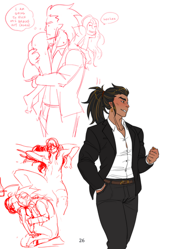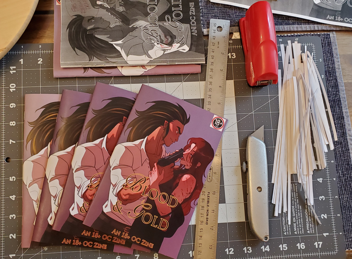 This is an NSFW M/M kink short story (5.7k words) assembled in zine format, including character bios, illustrations, and bonus drawings at the end. Total zine length is 36 pages.